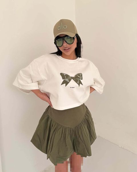 Wholesale Custom Logo Spring White Bow Print Women Short Sleeved T-shirts Three Quarter Loose T-shirt$6.19
