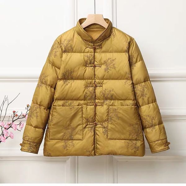 Women's Retro Embroidered Knitted Jacket Lightweight Stand Collar Coats for Winter Wholesale$21.99