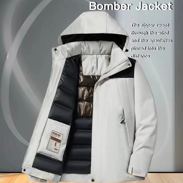 Autumn Winter Men's Bomber Jacket with Warm Graphene Inner Lining Stand Collar and Hood Zipper Coat$10.72