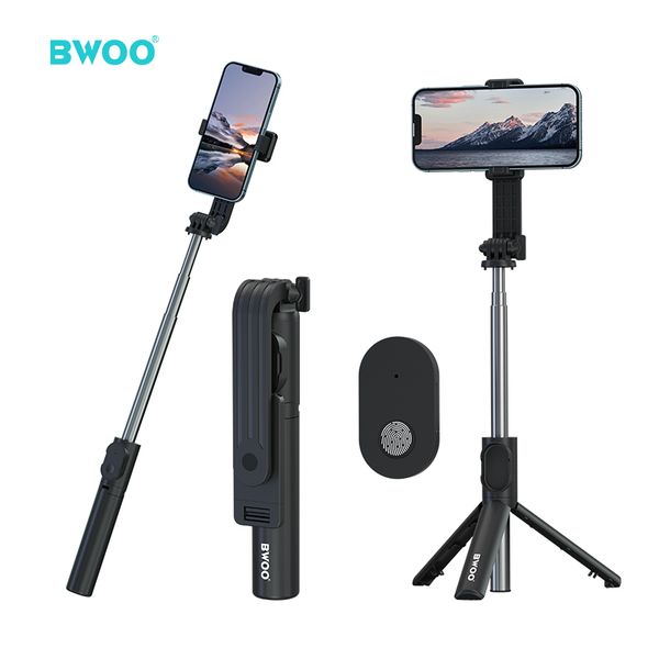 BWOO New Arrived Blue Tooth 5.2 Mobile Phone Selfie Stick 360 Rotation Remote Control Wireless Tripod Monopod Selfie Stick$4.9