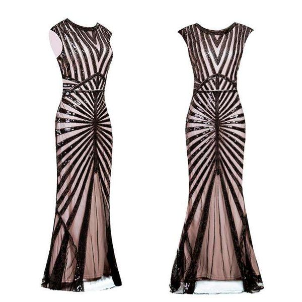 Retro Sequins Long Prom Dresses V-neck Beaded Sequins Gatsby Maxi Women Evening Dresses$13.34