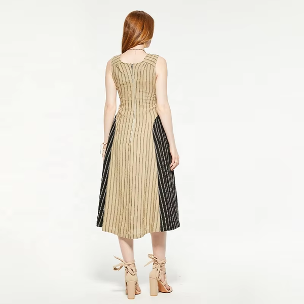 Custom Sleeveless Midi-Length Rib Knit Slip-On Dress for Women Deep V Neckline Knitted Casual Dresses Manufactured Knitwear$17.5