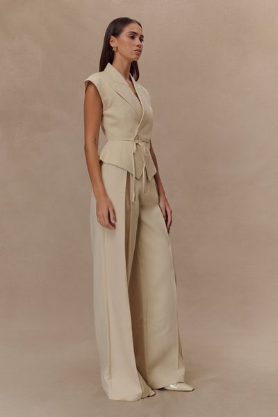 New Women Office Lady Style Fashion Vest Suit Single Breasted Stand Vest + High Waist Pocketed Satin Fabric Breathable Set$25.4