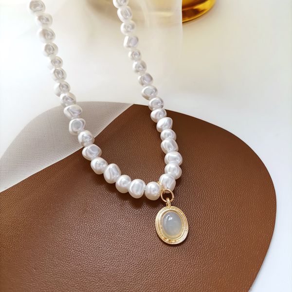 Collier Pour Femmes French Fashion Sweet Irregular Pearl Necklace Round Pendant Necklace for Women$1.1