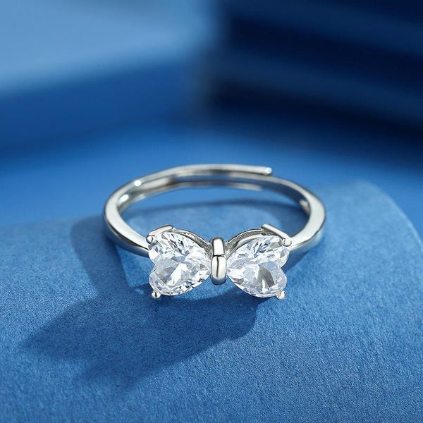 Zircon Bow Tie Design Adjustable S925 Zircon Rings Summer Collection Sterling Sliver Ring Simple Styles Rings for Girls$6.9