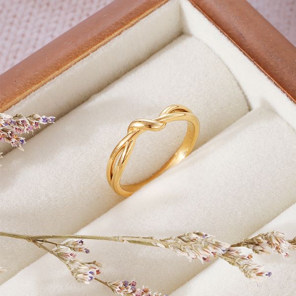 Zhongzhe Ai Endless Twist Ring for Women Stainless Steel Plated with 18k Gold Wrapped Fashionable Simple Ring for Women$2.19
