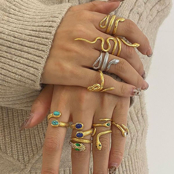 Snake Fashion Jewelry Rings Women Vintage Stainless Steel 18K Gold Plated Open Ring Wholesale Customize$1.51