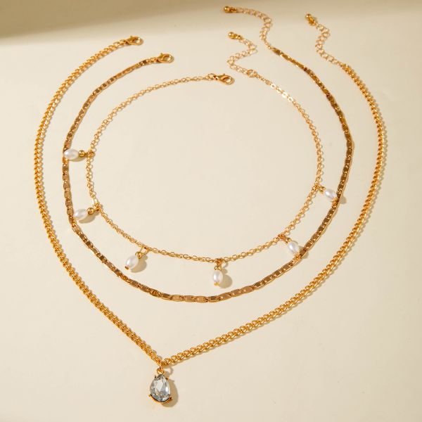 Fashionable Multi-layer Flower Pearl Necklace Adjustable Water Drop Pendant Necklaces for Women Jewelry$1.09