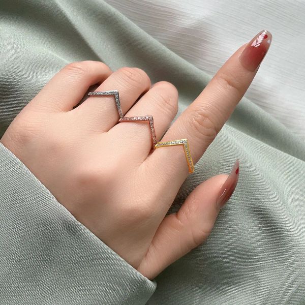 2025 New Fashion Micro-set Diamond V-shaped Ring for Women Stainless Steel High-end Design Non-fading Index Finger Ring$1.99