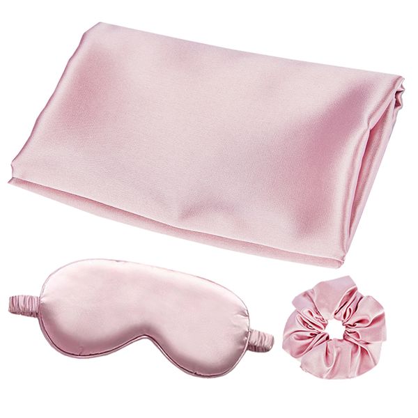 New Satin Silk Pillowcase Exquisite Eye Mask Scrunchies Set Hair Care Bonnet Sleep Mask Headband 6pcs Sets with Gift Box$6.2