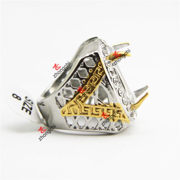 Wholesale Great Wall Pattern 316L Stainless Steel Ring 18K Gold Hollow Design Men Women Fashion Ring Fine Jewelry$0.54
