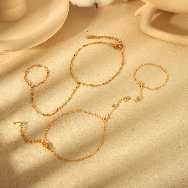 Hot Sale Finger Chain Bracelet Gold Plated Stainless Steel and Glass and Zircon Finger Ring Chain Bracelet for Women Gift Party$1.85
