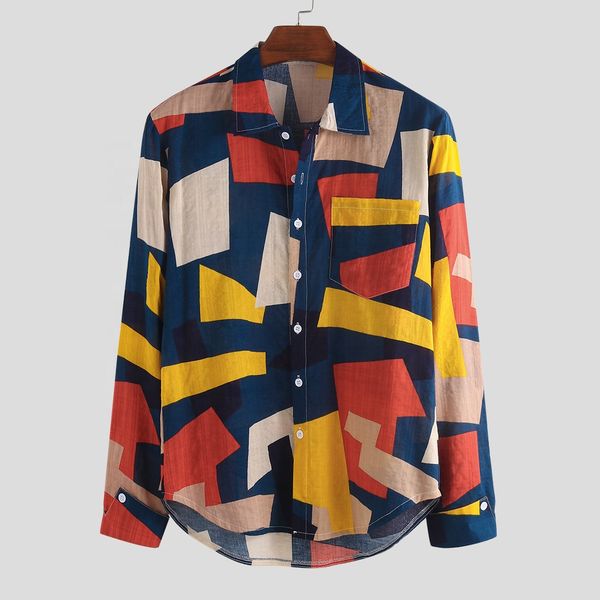 Fashion Spring Autumn Clothes Brand 3D Printing Wholesale Multi Colors Casual Polyester Cotton Soft Long Sleeve Men Shirts 5XL$9.3