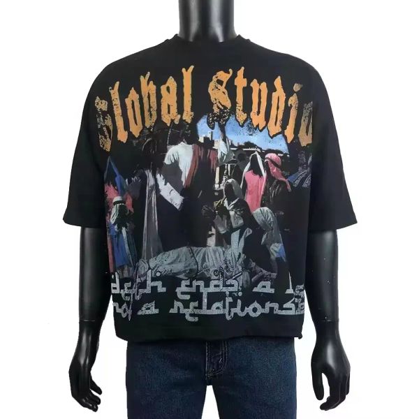 Manufacturer Oversized Boxy Drop Shoulder Cartoon Pictures T-Shirt Custom Heavyweight Distressed Cropped Boxy Fit Tshirt$3.98