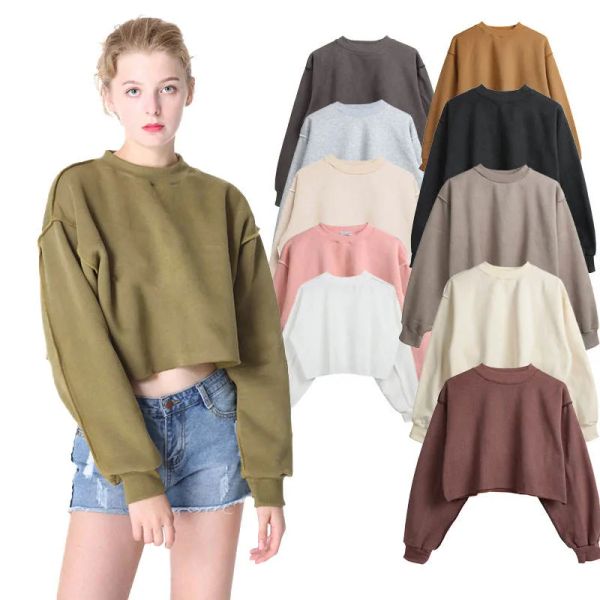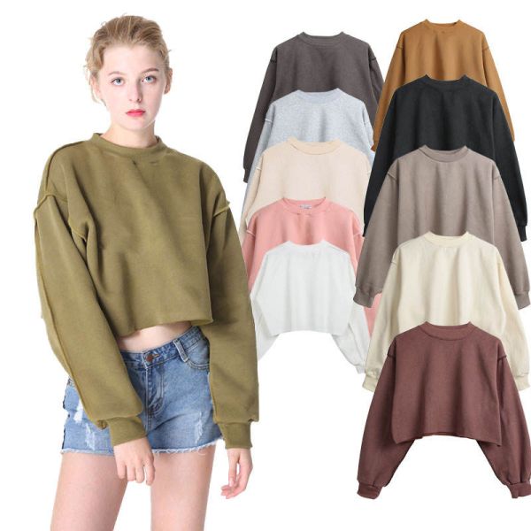 New Arrival Solid Block Color Fleece Women Pullover Crop Top Sweatshirt for Women$7.5