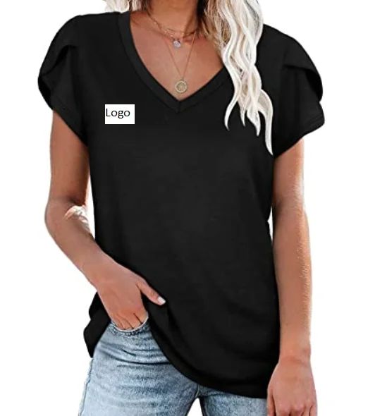 Women's Tops V Neck Summer Petal Sleeve Casual T-shirts Women Fashion Personalized Printing Short Sleeve T Shirt Dress Clothing$1.99