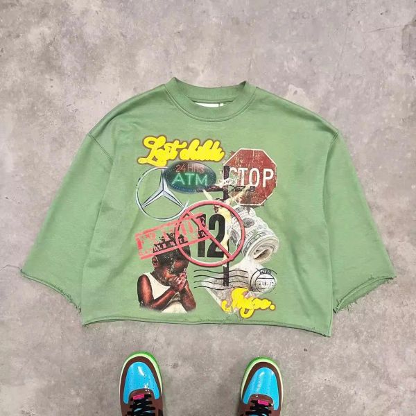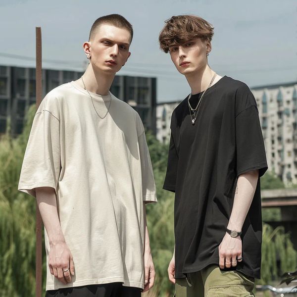 Hombre and Short Set Man Dropped Shoulder Streetwear Crop Woman Cotton Blank Oversized Unisex Acid Wash High Crew Neck Tshirt$6.31
