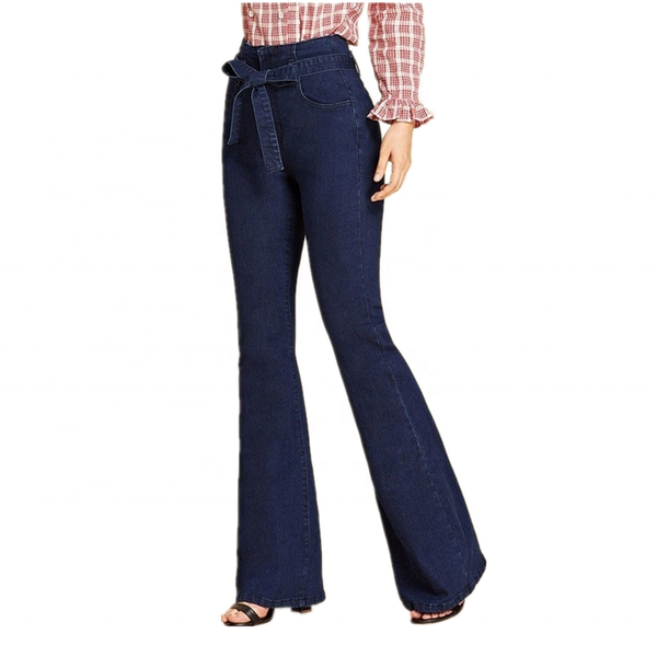 Wholesale New Design Elegent Women Blue Denim Pants High Waist Flare Jeans$11.5
