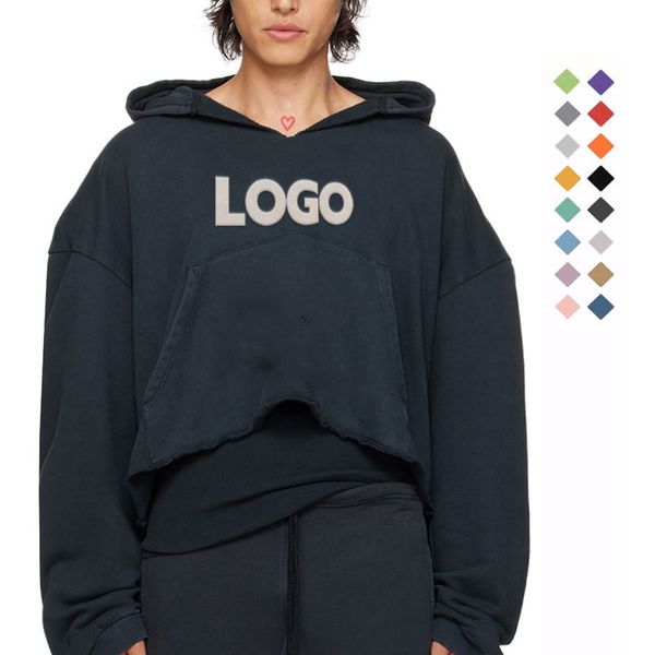 Custom Logo 500GSM 600GSM Men Oversized Raglan Box Fit Thick Heavyweight Cotton Drop Shoulder Boxy Blank Cropped Hoodie Men$11.93