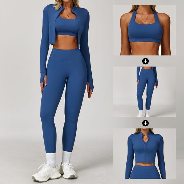 New Arrival 3 Piece Comfortable Workout Outfits Absorb Sweat Sports Suits Women Naked Feeling Yoga Set$8.59