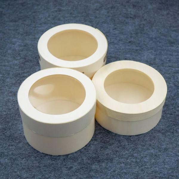 Factory-made Customisable Transparent Window Round Wooden Cake Gift Boxes$0.4