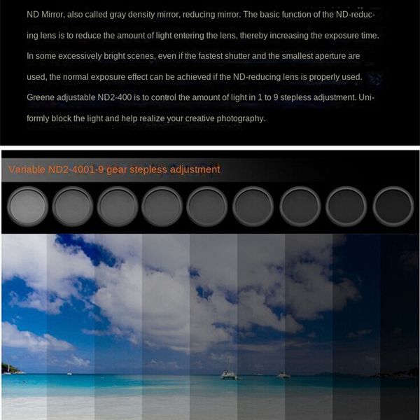 37mm Variable ND Filter ND2-400 Adjustable Neutral Density Lens for Camera Compatible Smartphone Lens for Landscape Shooting$4.38