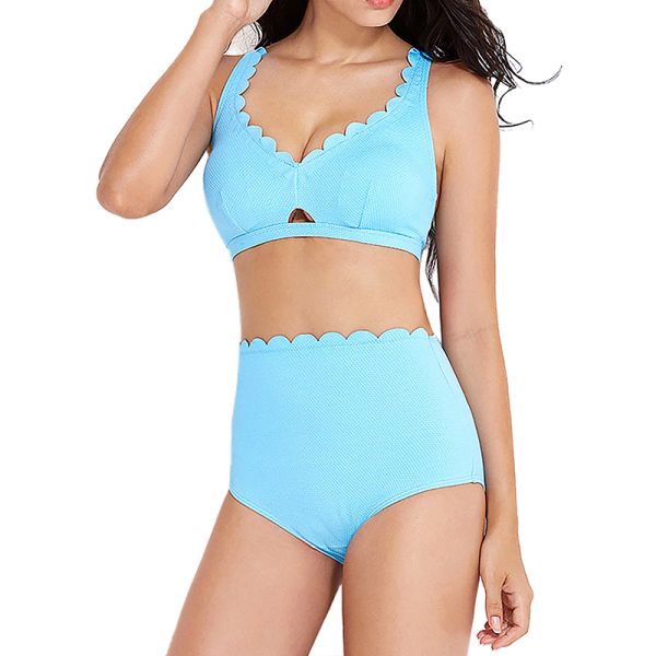 New Sweet High Waist Fashion Belly Covering Bikini Ruffle Edge Swimwear Beachwear Hot Spring Swimwear$4.9