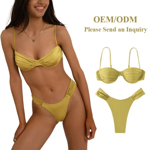 Custom Private Label Customized Push up Solid Women Custom Swimwear Sexy Bikini Two Piece Swimsuit$4.7