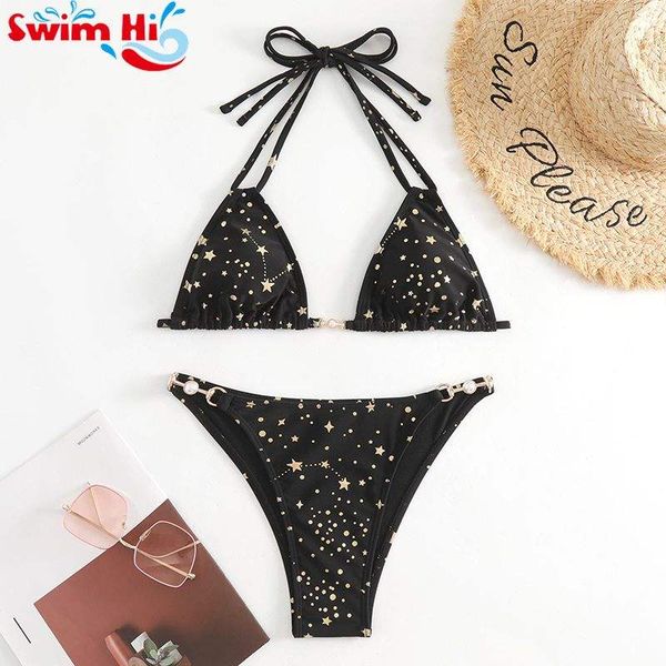 New Fashion Women's Sexy Split Bikini Fold New Design Wholesale Swimsuit Printed Triangle Bikini$4