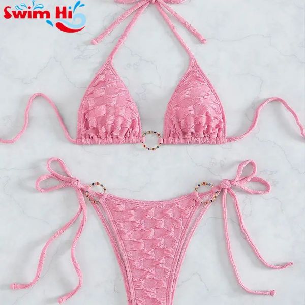 Retro Luxury Bikini Set Top and Bottom Ribbed Sportswear Swimwear Bikini Woman$5