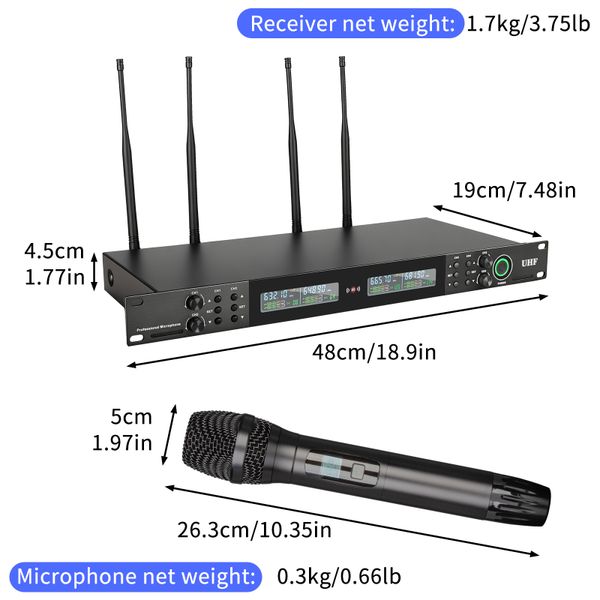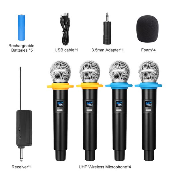 4 Channels UHF Wireless Handheld Microphone Fourfold Four-Channel Microphone Rechargeable Battery Made Durable Metal Plastic$20.3