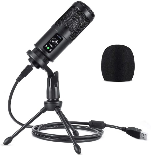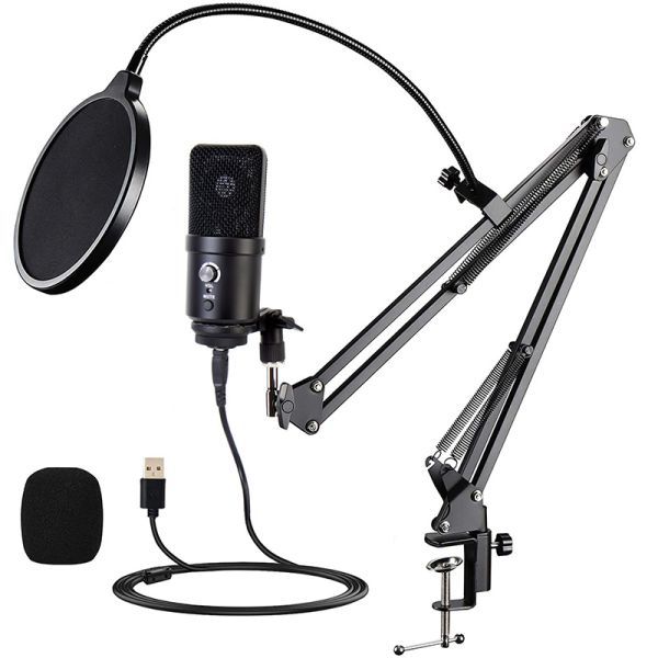 Vlog Broadcasting Condenser Streaming Gaming USB Microphone with Arm Stand$18.75