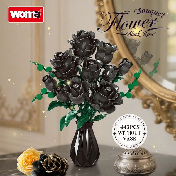 Woma Factory Black Rose Bouquet Flower Building Blocks Sets Artificial Brick for Home Decor Gifts (11157)$5.9