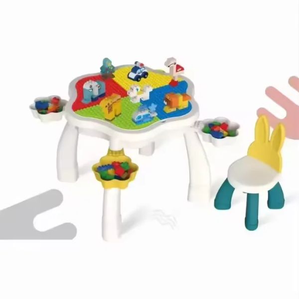 New Arrival Diy Assemble Building Block Multifunction Storage Kids Building Blocks plum Blossom Table with Chair$25.45