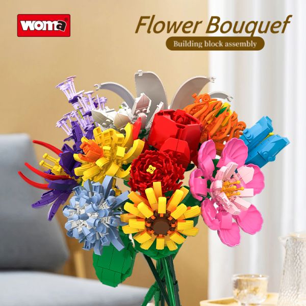Woma Toys 11053 Hot Sale on Retail Platform Blooming Blocks Bouquet Creativity Building Set 12 in 1 Bricks Flower Building Block Plastic Toys$8.33