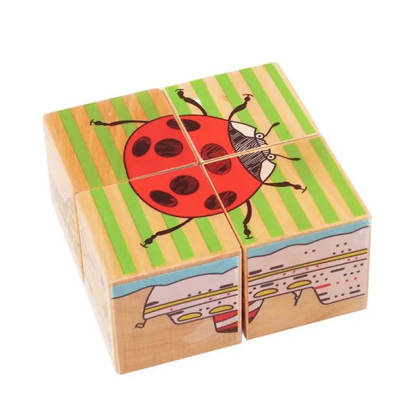 Hexahedral Painting Building Block Custom Wood Toys Montessori Toys Set Wooden Jigsaw Puzzles For Toddlers$1.3