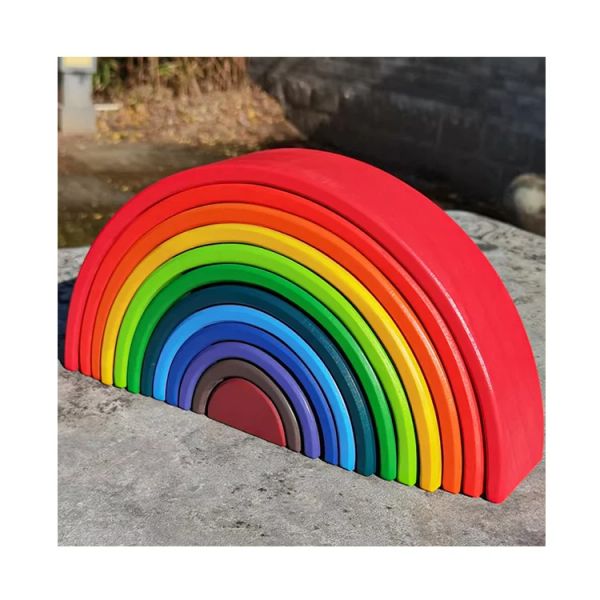 12pcs Rainbow Wooden Blocks Stacking Toy Large Rainbow Building Blocks Educational Toy Wood Building Blocks$7