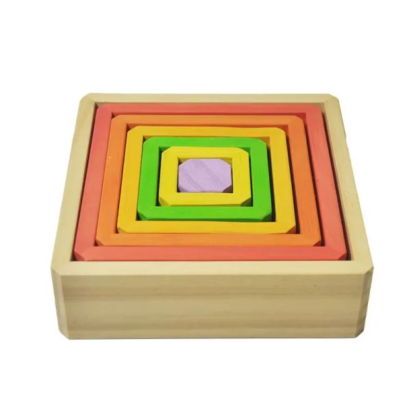 Children Geometric Shape Wooden Rainbow Square Stacking Box Rainbow Building Blocks Rainbow Stacking Game$5.5