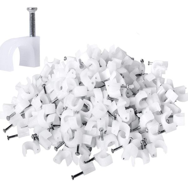 HUASU 7MM Plastic Circle Cable Clip with Nail - Secure Wire Organizer$0.33