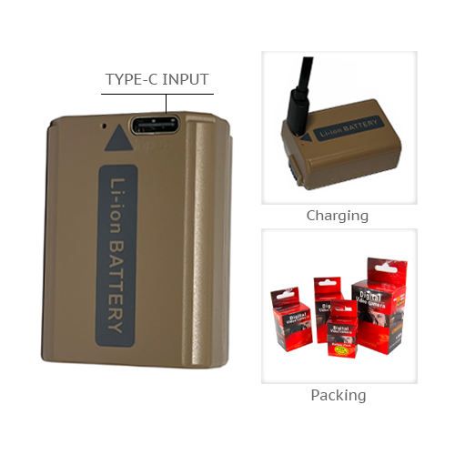 Camera Battery TNP-FW50 NP-FW50 & USB-C Input for Sony Alpha A6400 A6000 A6300 A6500 A5000 A5100 A7 A7II A7R A7RII A7S RX1R M3$4.9