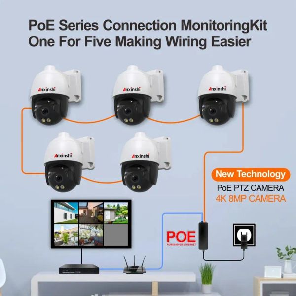 Poe 4K 8MP PTZ Camera Humaniod Detection Audio Day and Night Double Light Full Color Mini Security Ultra HD Dome Camera Kits Sonyimx415$99