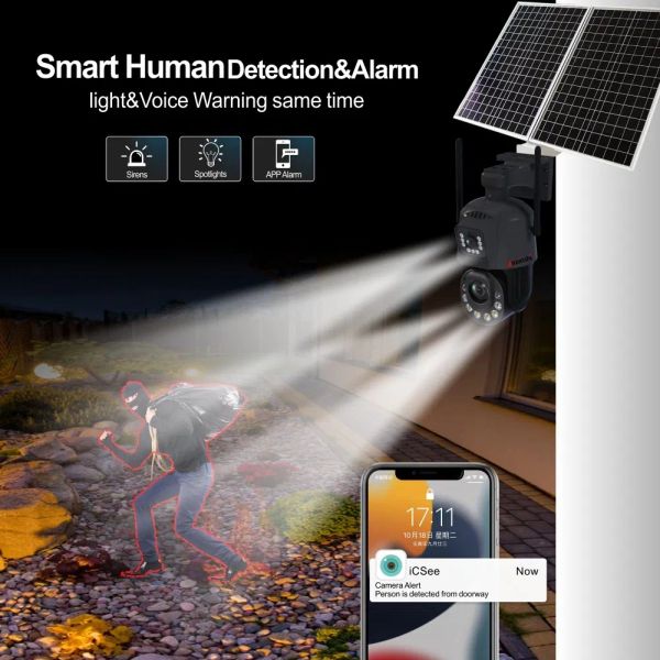 6MP 36X Zoom Icsee APP 4G Solar Security Camera Kits$269
