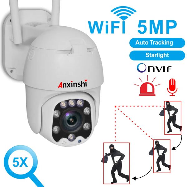 Anxinshi Starlight 5.0MP 5X Optical Zoom WiFi Camera Hidden with Two-Way Voice and Motion Alarm Function Wireless IP PTZ CCTV Camera$56