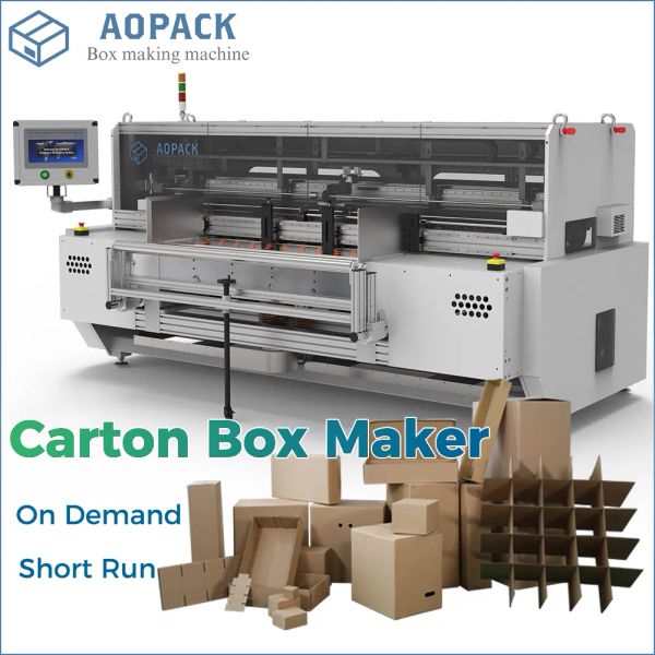The company's core product line includes fully automatic all-in-one machines such as the BM2508-Pro, BM3000-HD, and BM1800-Mini. These compact systems integrate board feeding, slotting, scoring, creasing, slitting, trimming, and printing into a single pass, supporting over 150 pre-programmed box styles without the need for physical molds. Their heavy-duty models can process cardboard from E-flute to AAA-flute (3 to 7 ply) with widths up to 3000mm. Aopack also provides auxiliary equipment like hot melt gluing machines and specialized packaging solutions for the food and medical sectors.
