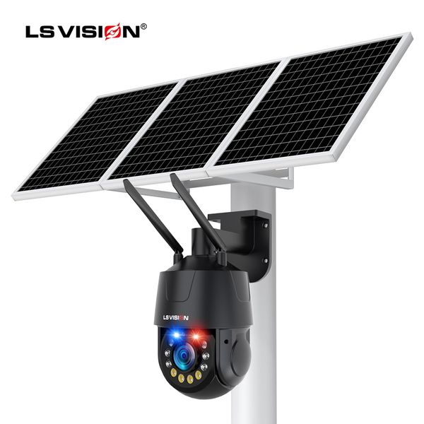 LS VISION Wireless 4G Battery CCTV Sim Card Solar Powered IP 5MP PTZ Zoom PIR Alarm Outdoor Wifi Security Camera$91.2
