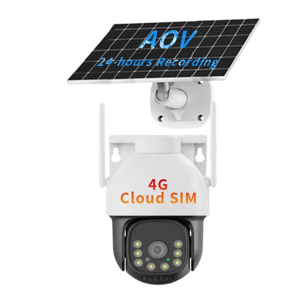 Full Day Recording and Color Outdoor AOV Solar 4G Security Camera with AI Motion Detection Low Power Battery IP Camera System$32