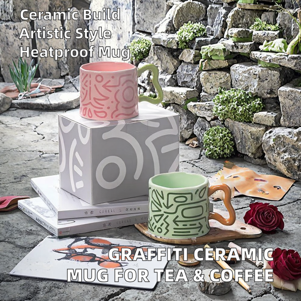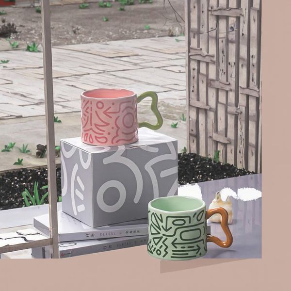 Creative Graffiti Underglaze Ceramic Mug Large-Capacity Simple Coffee and Tea Cups for Afternoon for Business Gifts$3.5