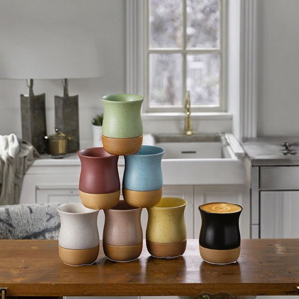 Eco-Friendly Custom Logo Porcelain Macaron Style Matte Coffee & Tea Cups Modern Design Ceramic Mug with Wood Base for Presents$2.7