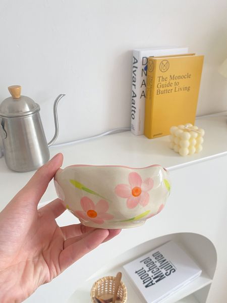 Hand-Pinched Retro Tulip Ceramic Bowl Irregular Ice Cream Cake Cereal Salad Dinnerware with Microwave Compatibility for Parties$2