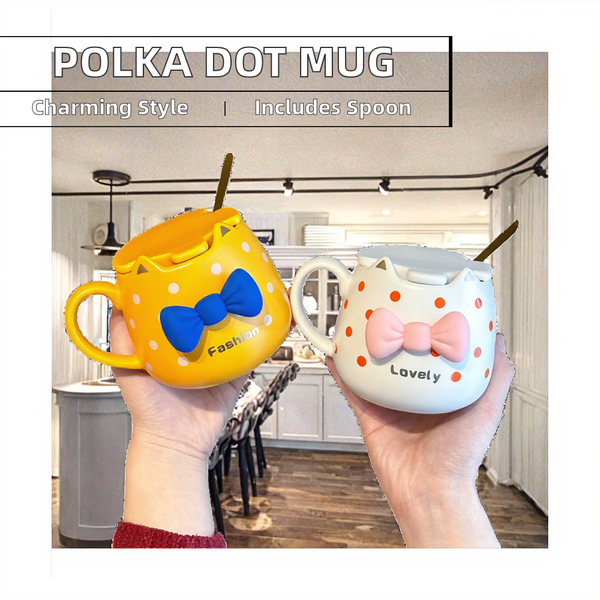 Cute Wholesale 400ml Ins Ceramic Mug with Polka Dot and Heart Bowknot Ins Drinkware Coffee Milk Mugs for Camping$2.79